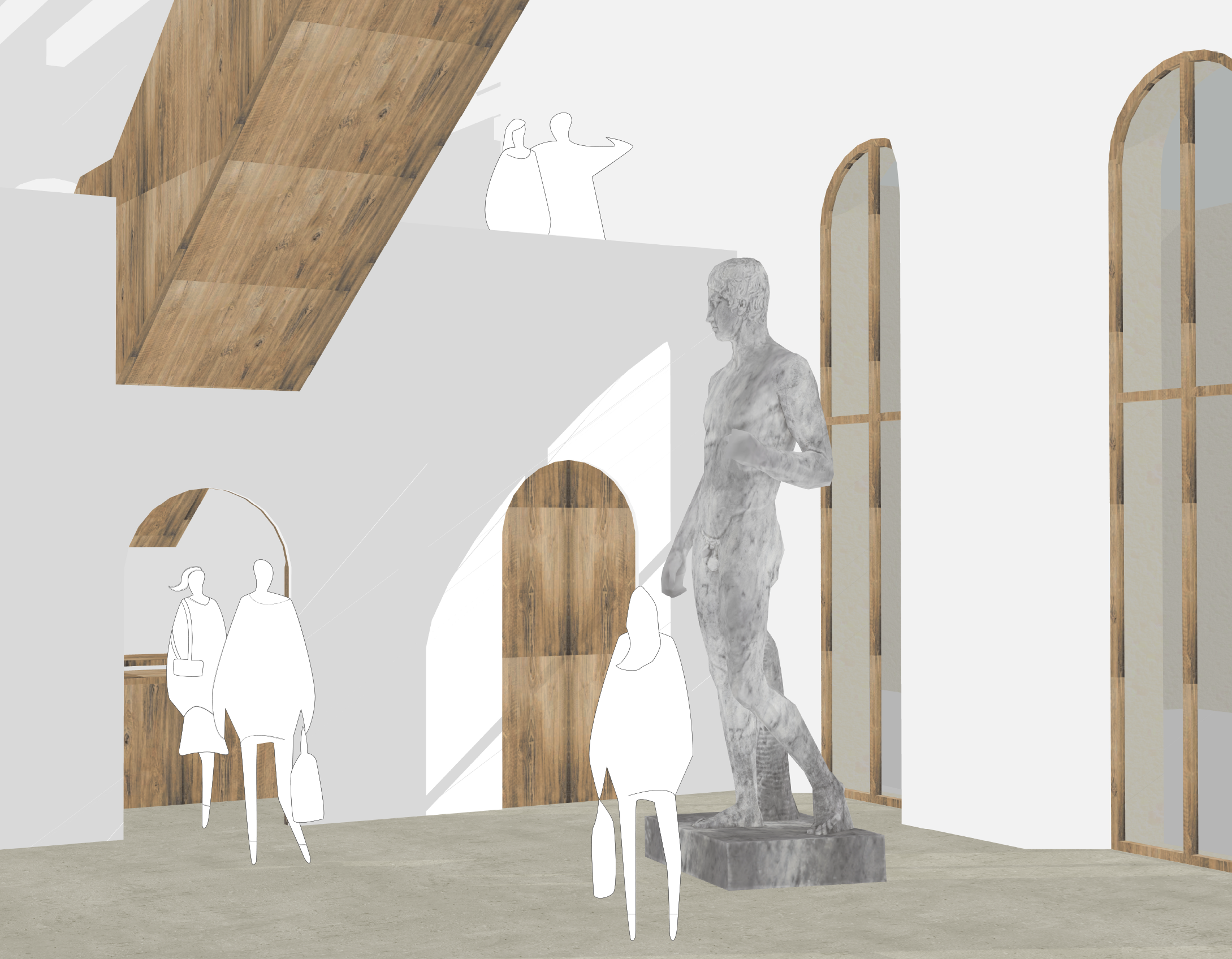 L’intervention architecturale et l’aménagement intérieur se veulent sobres, tout en reprenant des codes de l’architecture religieuse (arcs en plein cintre et respect de la symétrie).